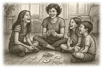 It was a late summer afternoon in 1982, and the golden rays of the sun were flooding through the living room window, filling it with a lovely light. I was sitting on the floor playing cards with my children; we were having so much fun. When it was my turn, I shuffled the deck. Most rules were forgotten, but it didn't seem to matter. For a few hours the busy world seemed very far away. No deadline, nowhere to go. Only the family and lots of laughter; it was a most special time. I cannot remember the scores or the hands we played, but I will remember those happy hours we spent together that mid-summer day. This memory is so clear, it lingers on and will never fade away. ~~~