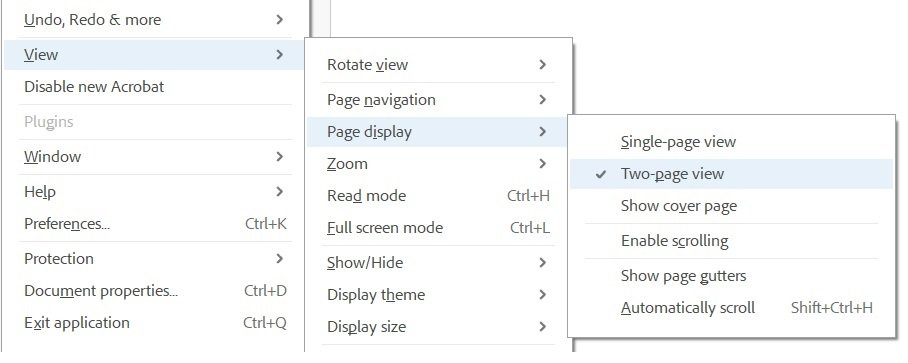 | Note If use your browser to view the ebook, it should be fine but if you are using a PDF Reader (lilke Acrobat) be sure to to set it to: Two-page view, it looks better. You can do this by going to the MENU >>> View>>> Page display>>> Two-page view. ![]() |